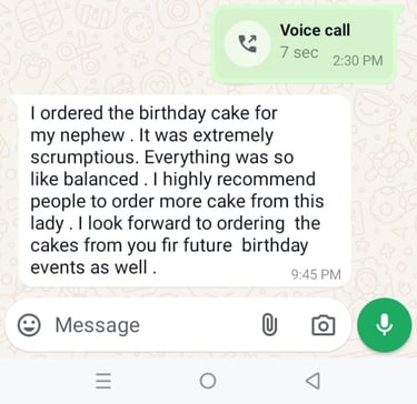Highly recommended to anyone looking for a quality, home-baked treat that stands out. I’m definitely looking forward to ordering more cakes from you for future birthday celebrations and special occasions.